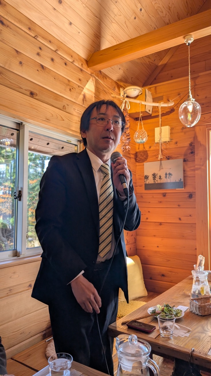 食事中に優勝チームから一人一人がご挨拶。沼田幹事も挨拶しました。