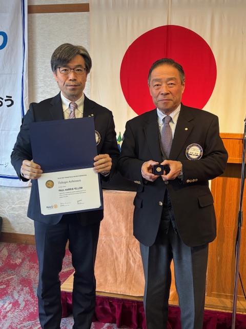 本日は例会前に芦澤会長がロータリー財団寄付で表彰されました。