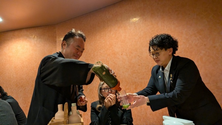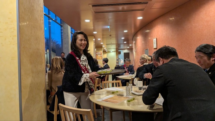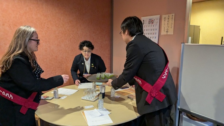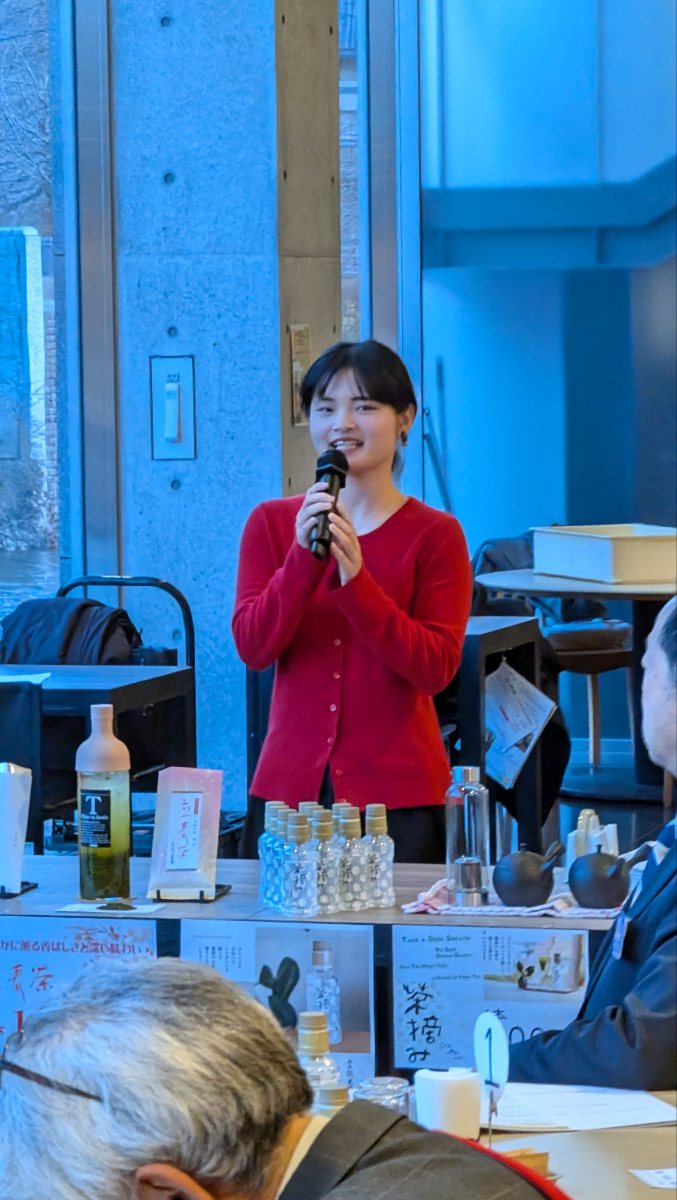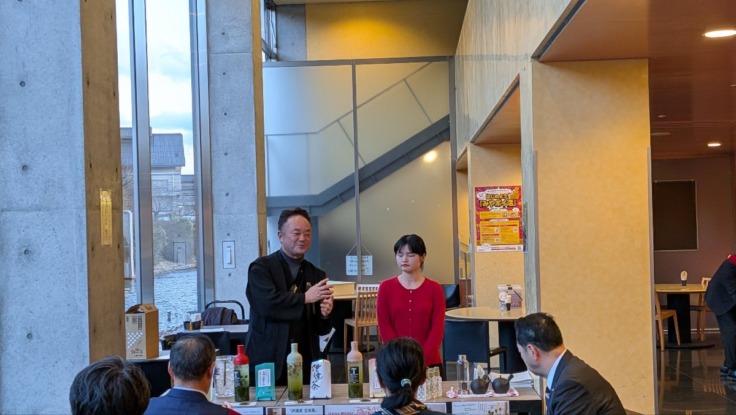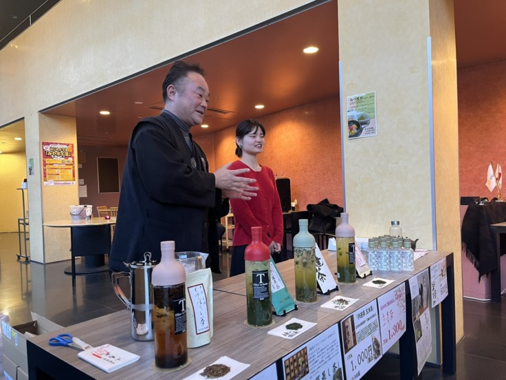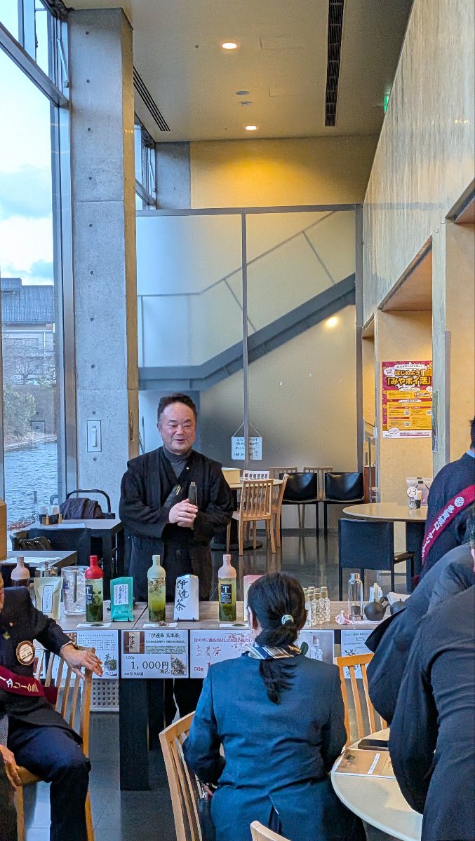 後方席まで来てお茶を試飲させてくださる矢部さん